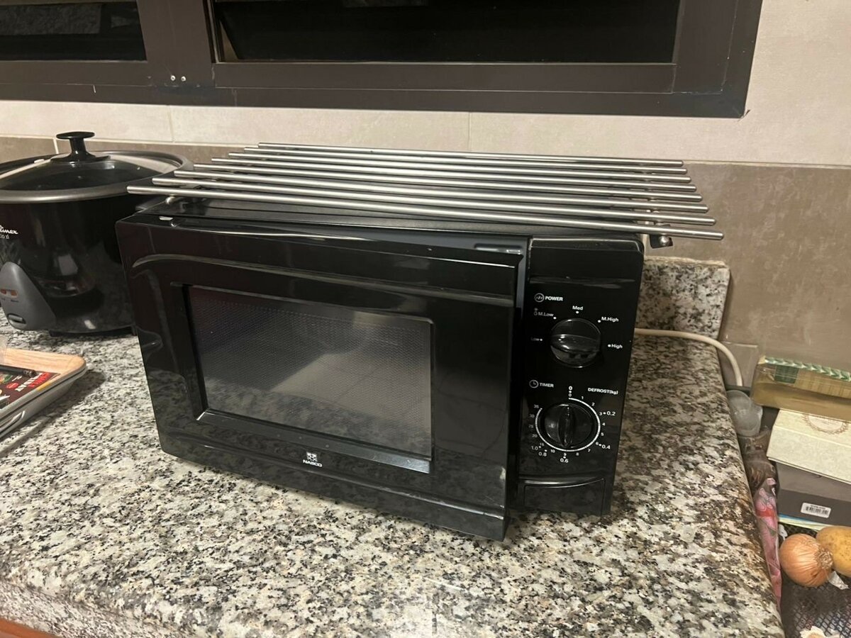 Découvrez ce four micro-ondes compact en noir, parfait pour les petites cuisines ou espaces restreints.