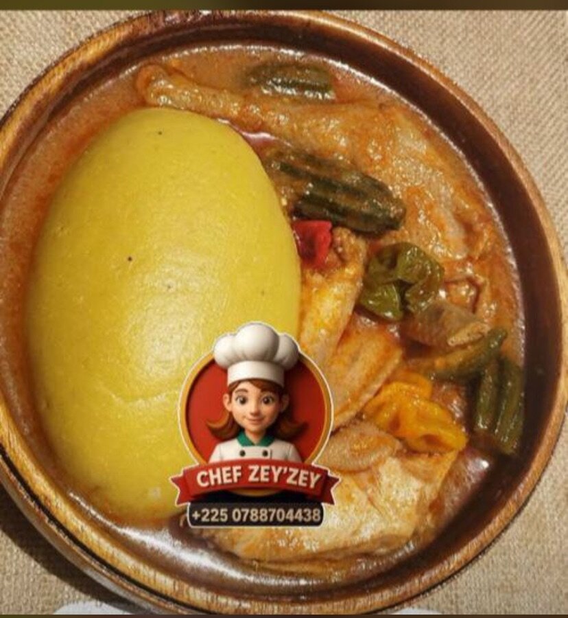 Découvrez notre plat foutou banane accompagné de la sauce aubergine avec du poulet fumé Parfait pour un repas réconfortant!