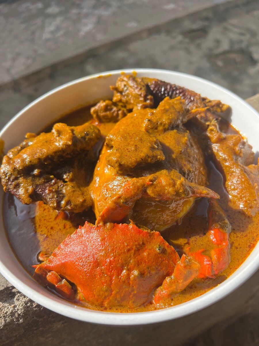 Savourez notre foutou sauce graine , riche en saveurs épicées. Parfait pour un repas gourmet, ce plat combine fruits de mer frais avec des épices exotiques. Idéal pour les amateurs de fruits de mer!