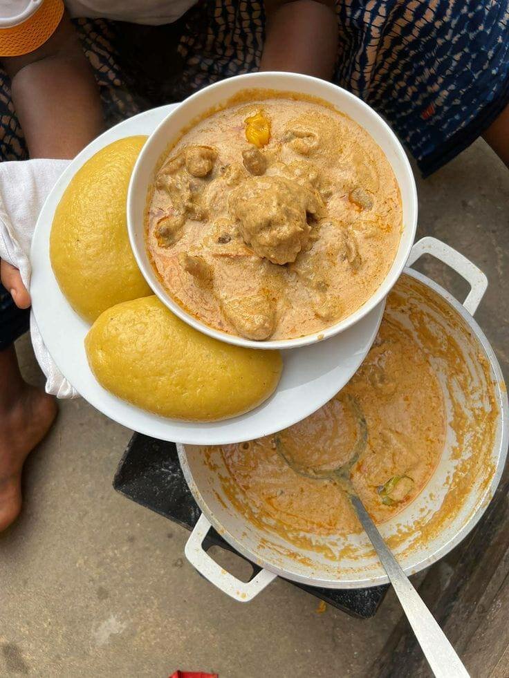 Découvrez la riche saveur de notre soupe à l'arachide épicée, accompagnée de fufu moelleux. Parfait pour une expérience culinaire africaine authentique à la maison. Idéal pour les amateurs de repas réconfortants et exotiques.