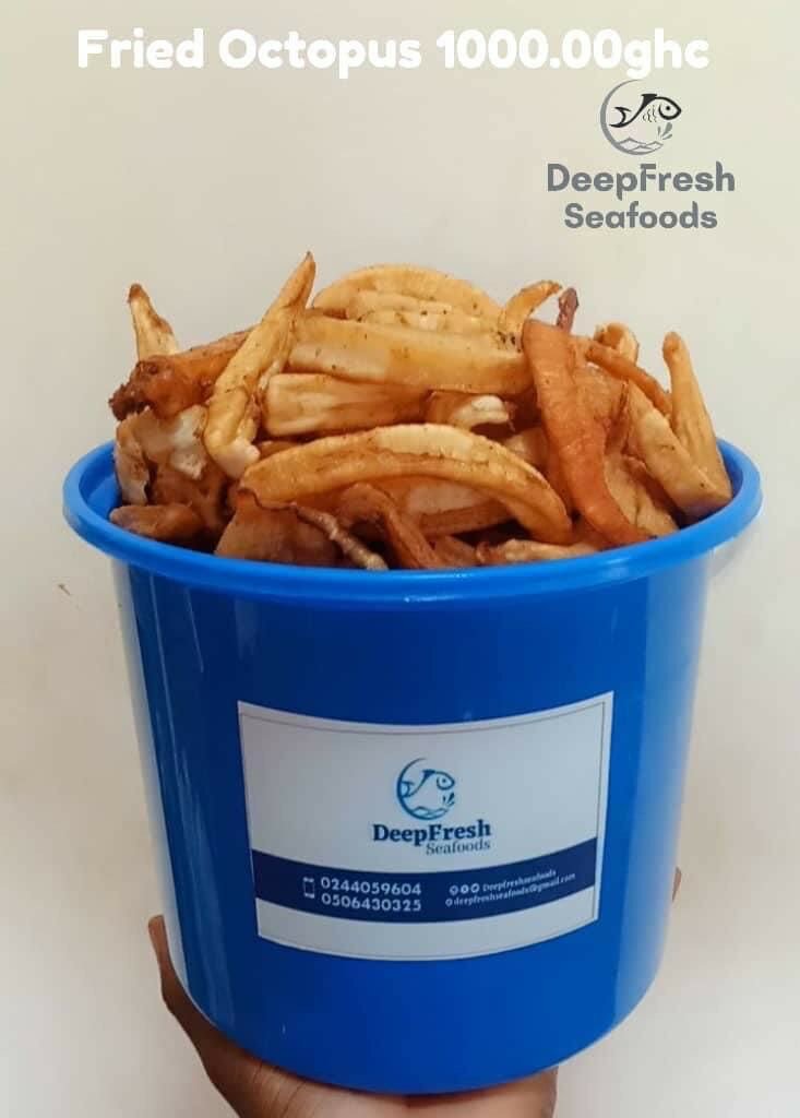 Fried Octopus 400.00ghc Fried Shrimps 200.00Ghc Fried Gborvilolo 200.00Ghc Fried Tilapia 100.00Ghc Fried Oneman 100.00Ghc