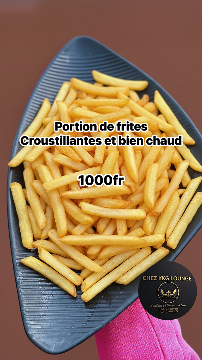 Savourez des frites dorées, croustillantes à souhait et servies bien chaudes. Idéales pour les amateurs de snacks rapides et délicieux. Parfait pour un repas sur le pouce ou pour accompagner votre plat préféré. Ne manquez pas ce petit plaisir à déguster seul ou entre amis !