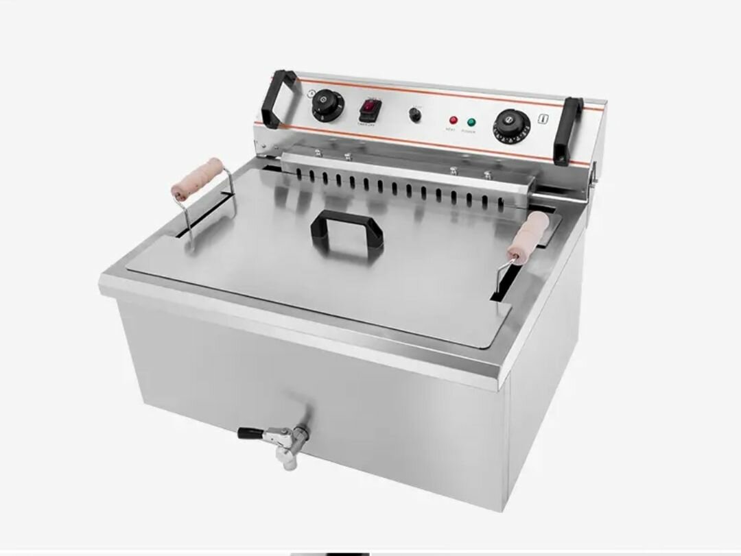 Friteuse professionnelle en acier inoxydable, idéale pour les restaurants. Capacité généreuse et facile à nettoyer avec des contrôles de température précis. Parfaite pour des frites croustillantes et autres délices frits.