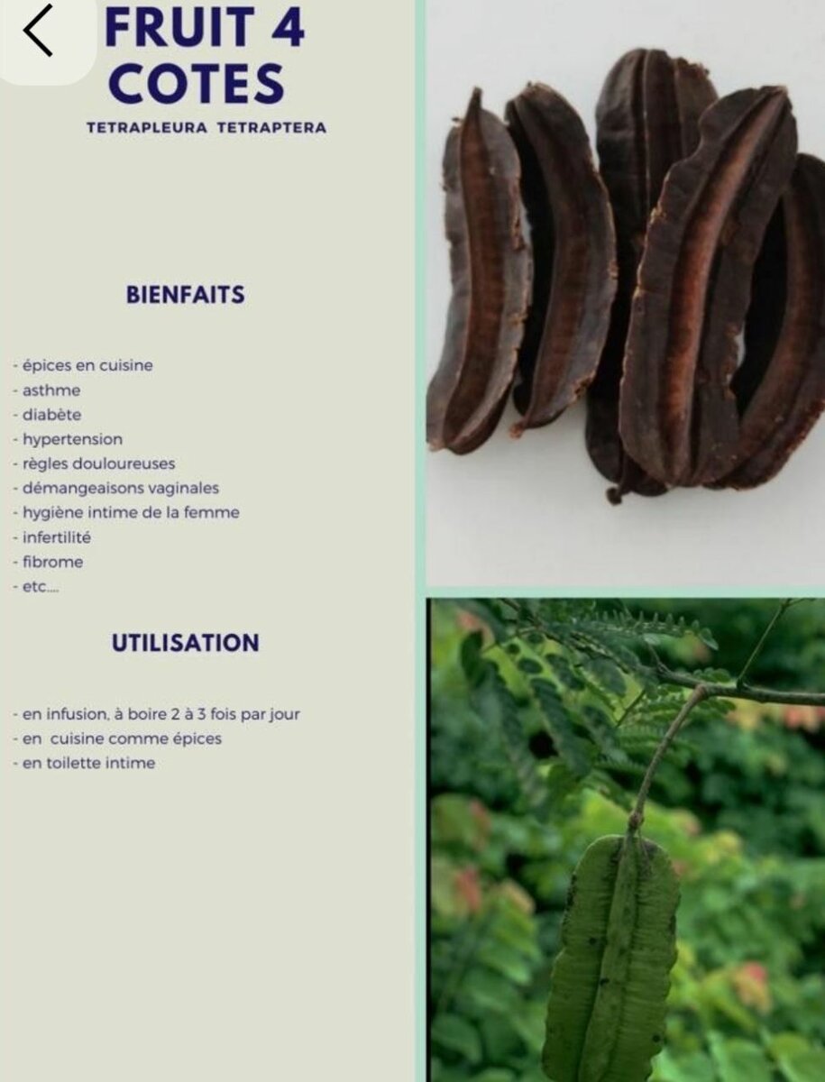 Découvrez le fruit de Tetrapleura, idéal pour des infusions saines ou comme épice. Parfait pour l'hygiène intime et les soins naturels. Utilisez-le en cuisine ou pour soulager divers maux.