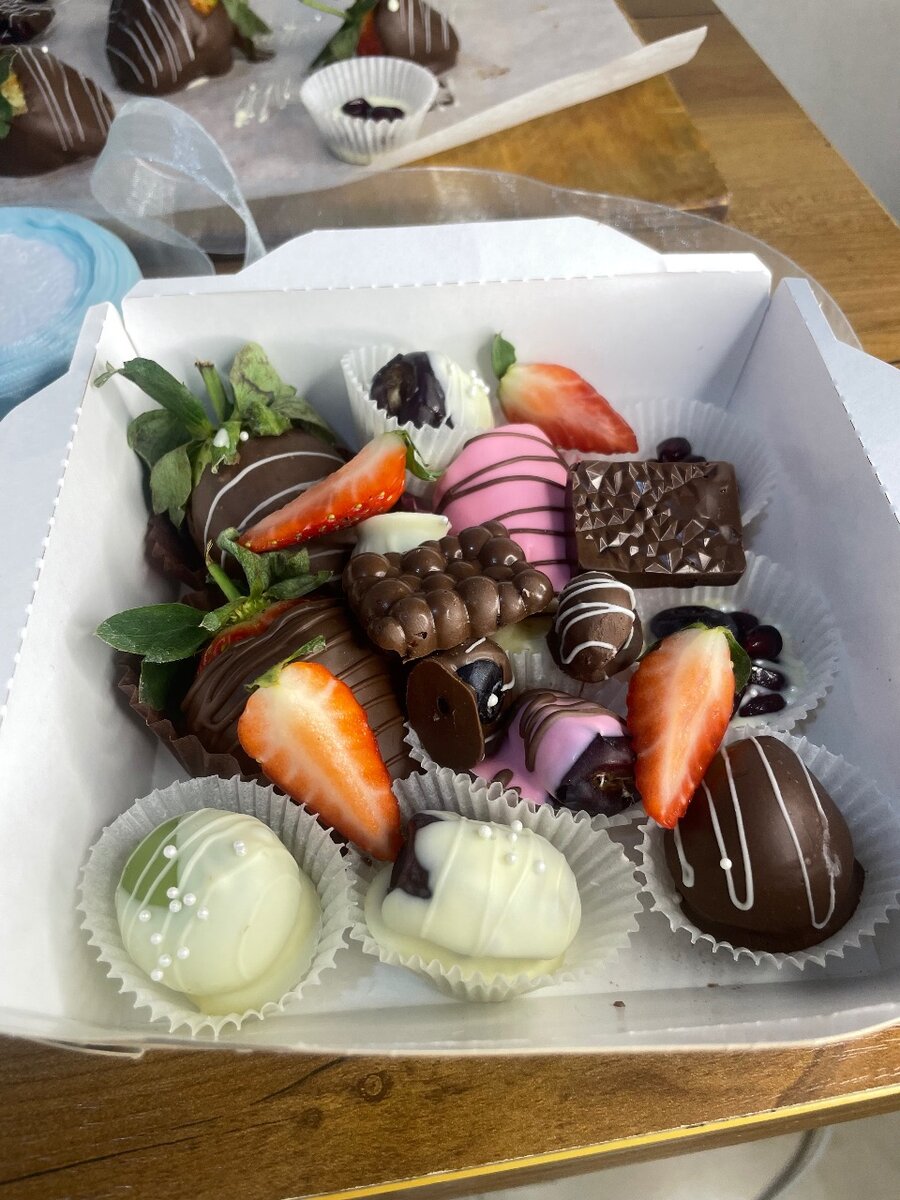 Сочные клубника,гранат,голубика,шайн мускат и банан в шоколаде