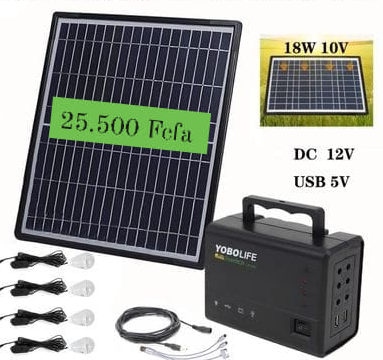 Tension de charge : 220 V CA/50 Hz Temps de charge : 16 heures Spécification de la batterie : plomb-acide 12V5A Panneau solaire : 18V15W Tension de sortie USB : 5V2.1A Configuration de l'ampoule : 4 ampoules LED 5 W. Matériau du produit : ABS + PC.
