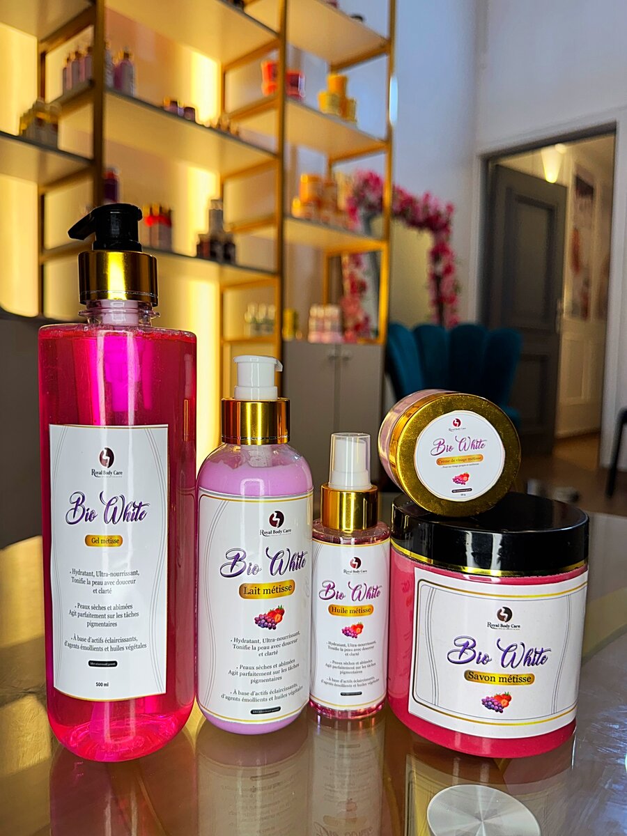Notre Gamme Bio White, spécialement conçue pour sublimer le teint métissé. Grâce à sa formule avancée, elle offre jusquà 4 à 5 carnations de plus, pour une peau uniforme, éclatante et naturellement lumineuse.