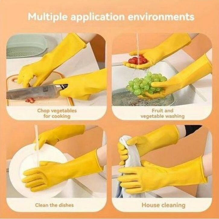 Découvrez ces gants en caoutchouc jaunes parfaits pour la cuisine et le ménage. Idéaux pour laver les légumes, faire la vaisselle ou nettoyer la maison. Leur design antidérapant assure une prise ferme, même avec du poisson. Résistants et confortables, ces gants sont un choix idéal pour toutes vos tâches ménagères!