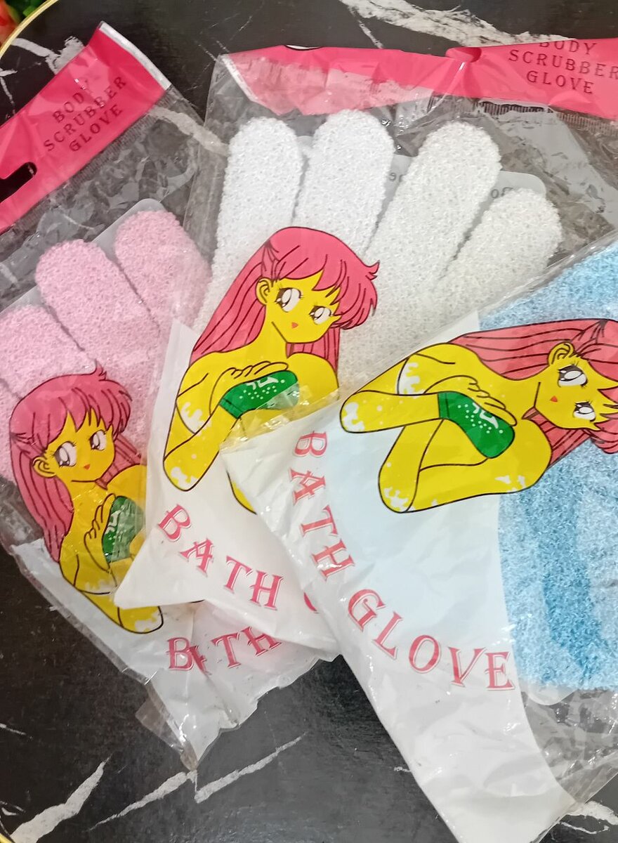 Gants exfoliants colorés pour le corps
