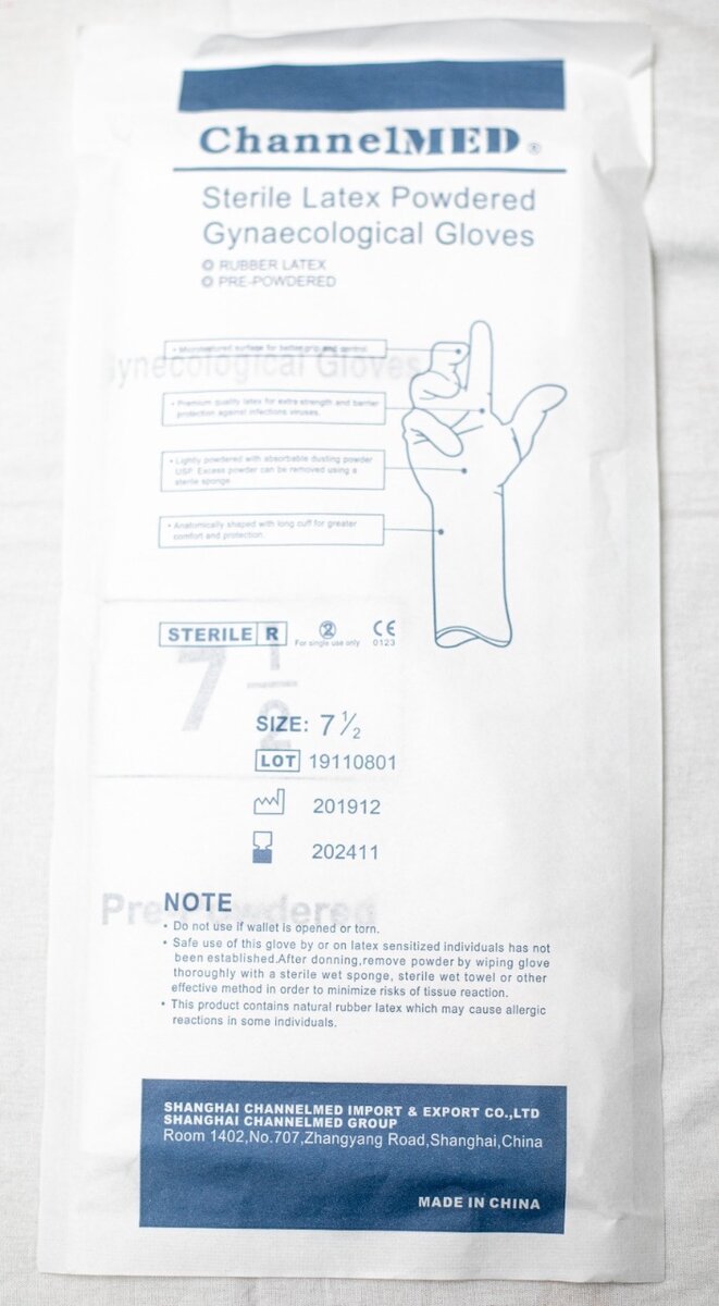Gants gynécologiques stériles ChannelMED en latex, taille 7,5. Idéaux pour les procédures médicales précises. Fournissent une protection fiable et un confort supérieur.