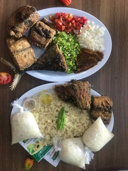 Découvrez le bon Garba ivoirien autrement. Fais avec du poisson thon frais et de l´attiéké de Dabou
