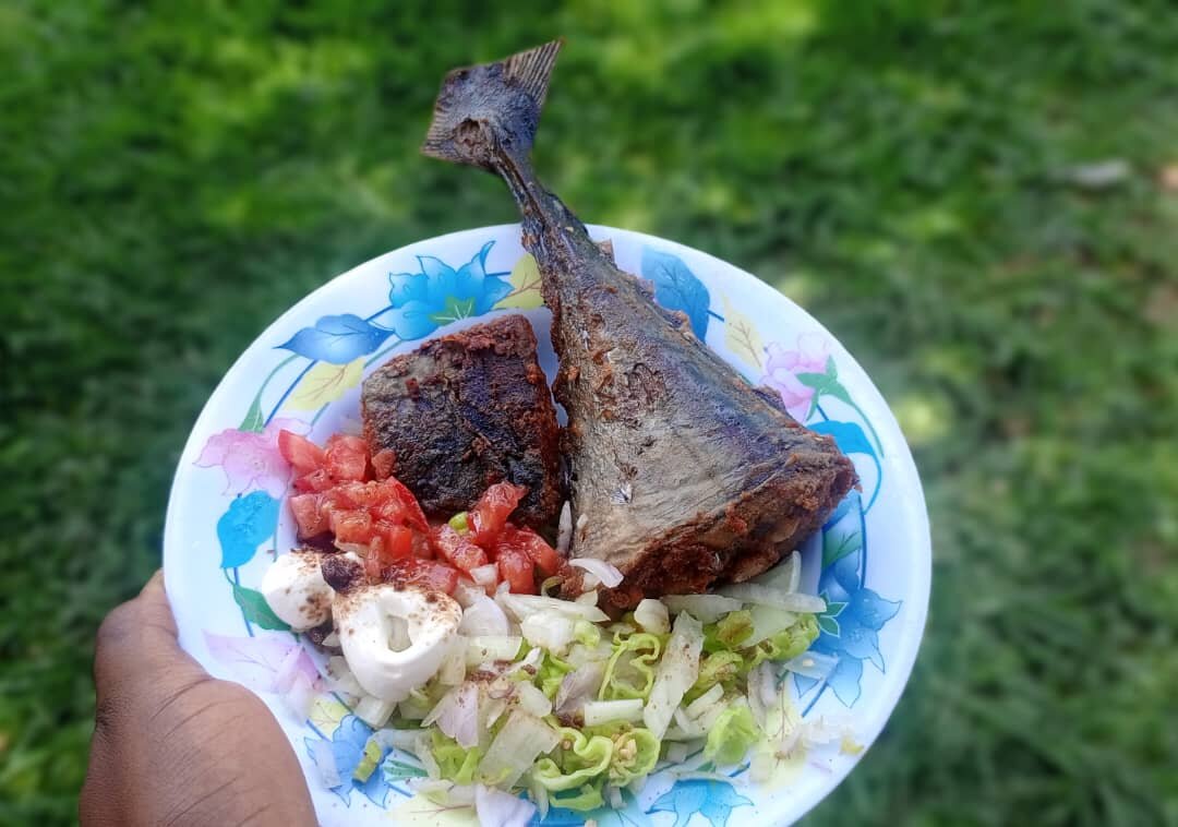 Savourez notre délice de garba bien chaud avec tous les condiments accompagné attiéké aromate