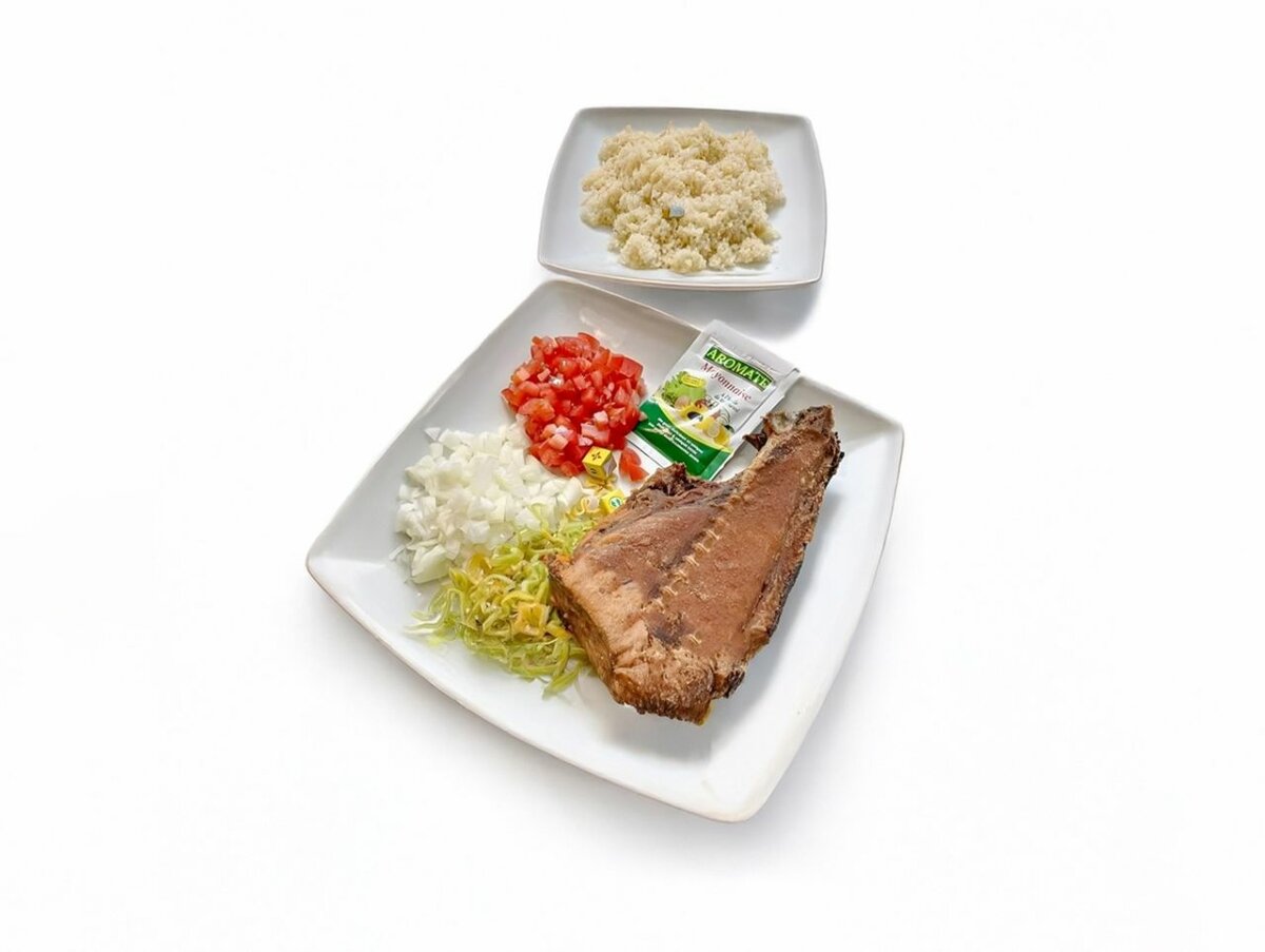 1 tranche de poisson thon frit accompagné dattieke et ingrédients