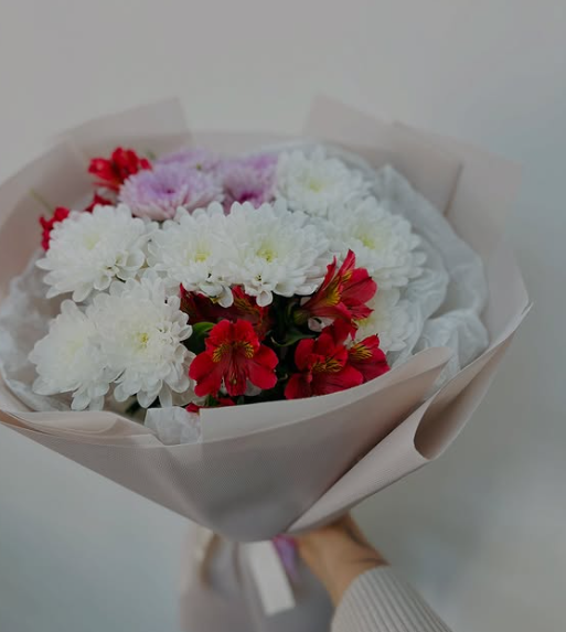Букет из хризантем и альстромерии