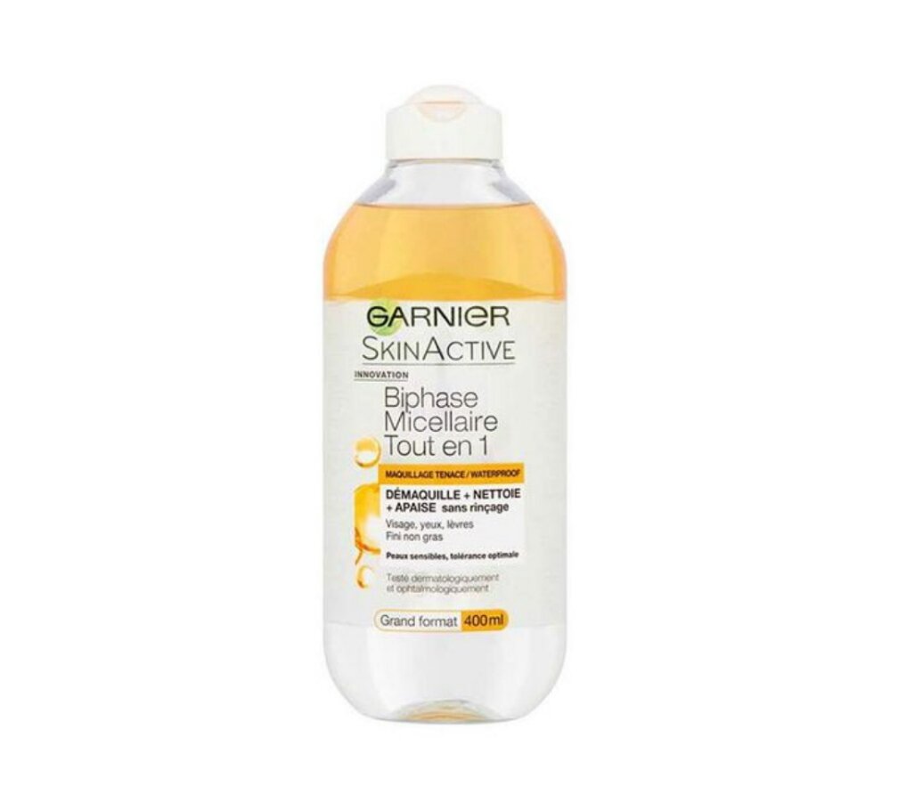 Garnier Biphase Micellar Water effectively removes makeup, cleanses, and soothes skin without rinsing. Suitable for face, eyes, and lips. Ideal for all skin types, providing a gentle yet thorough cleanse. Perfect for daily use, it leaves skin feeling fresh and hydrated.