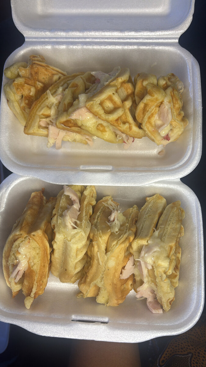 Savourez ces délicieuses gaufres farcies de jambon tendre et de fromage fondant. Idéales pour un déjeuner rapide ou un brunch gourmand. À emporter partout avec vous !