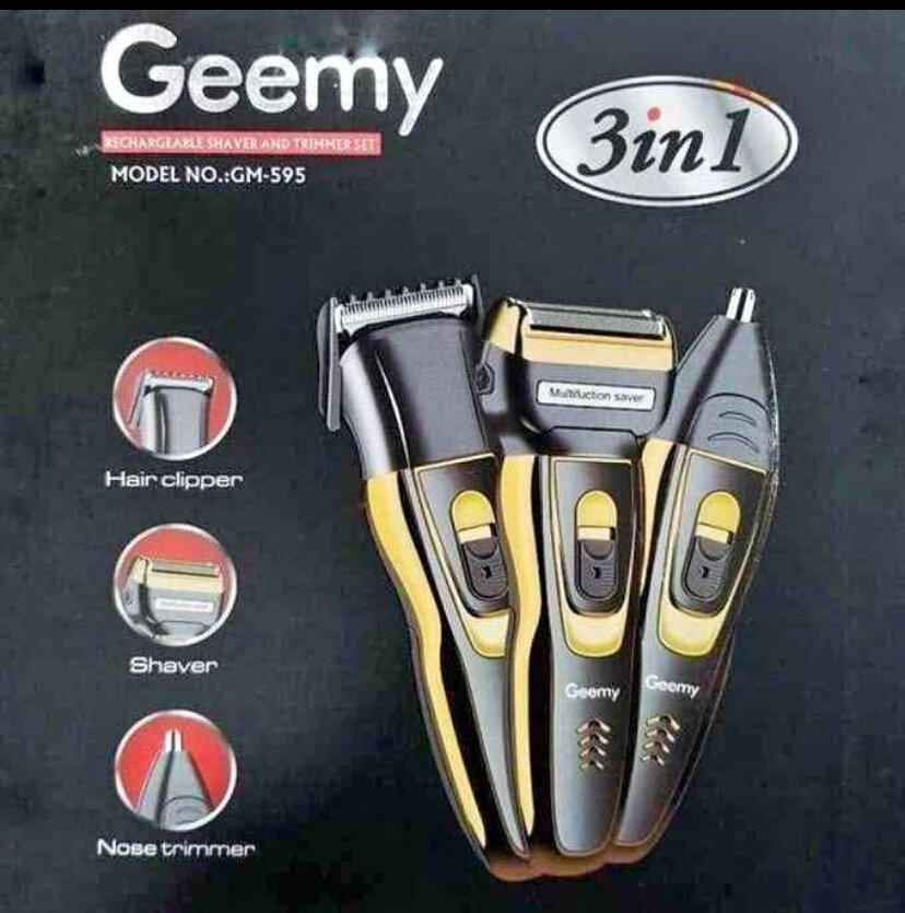 Tondeuse multifonction Geemy 3-en-1 pour des coupes impeccables. Comprend une tondeuse à cheveux, un rasoir et une tondeuse pour le nez. Idéale pour un soin personnel complet à domicile. Rechargeable et facile à utiliser.
