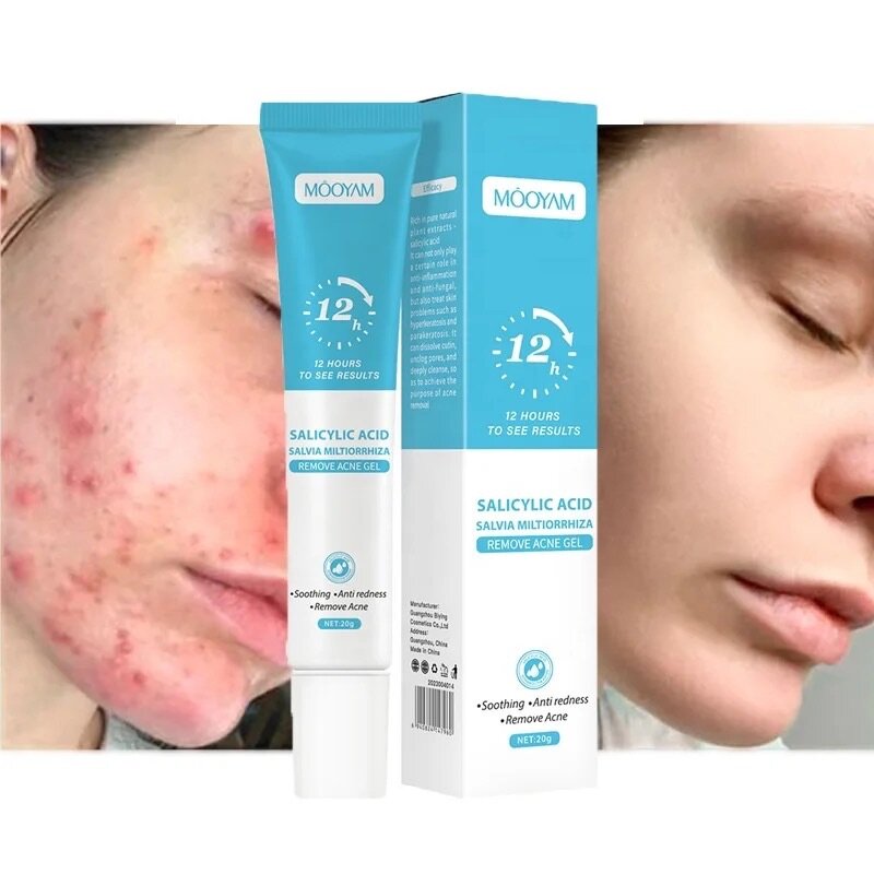 Gel anti-acné rapide à l'acide salicylique pour le visage de marque privée gel à base de plantes pour le traitement des boutons et des cicatrices .1 flacon à 2000F et 3 flacons à 5000F