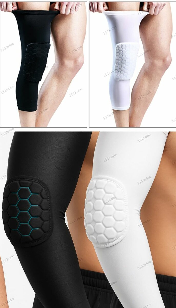 Genouillères de compression avec rembourrage en nid d'abeille pour protection et confort. Idéales pour le sport, le fitness et l'entraînement. Soutien optimal lors de vos activités physiques intenses.