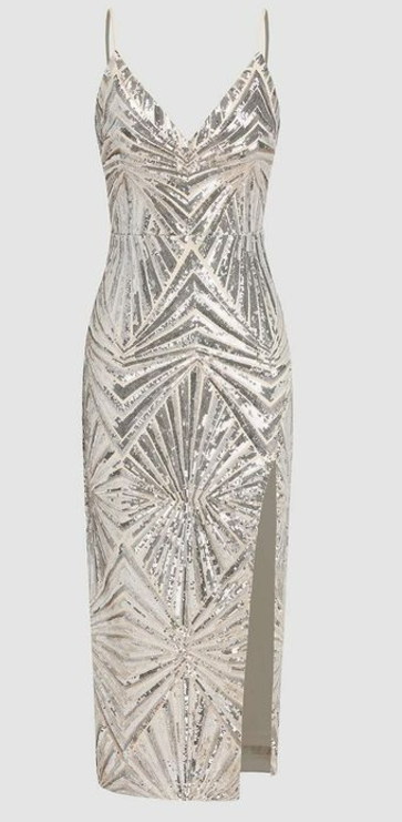 GEOMETRIC SEQUIN V-NECK SPLIT DRESS