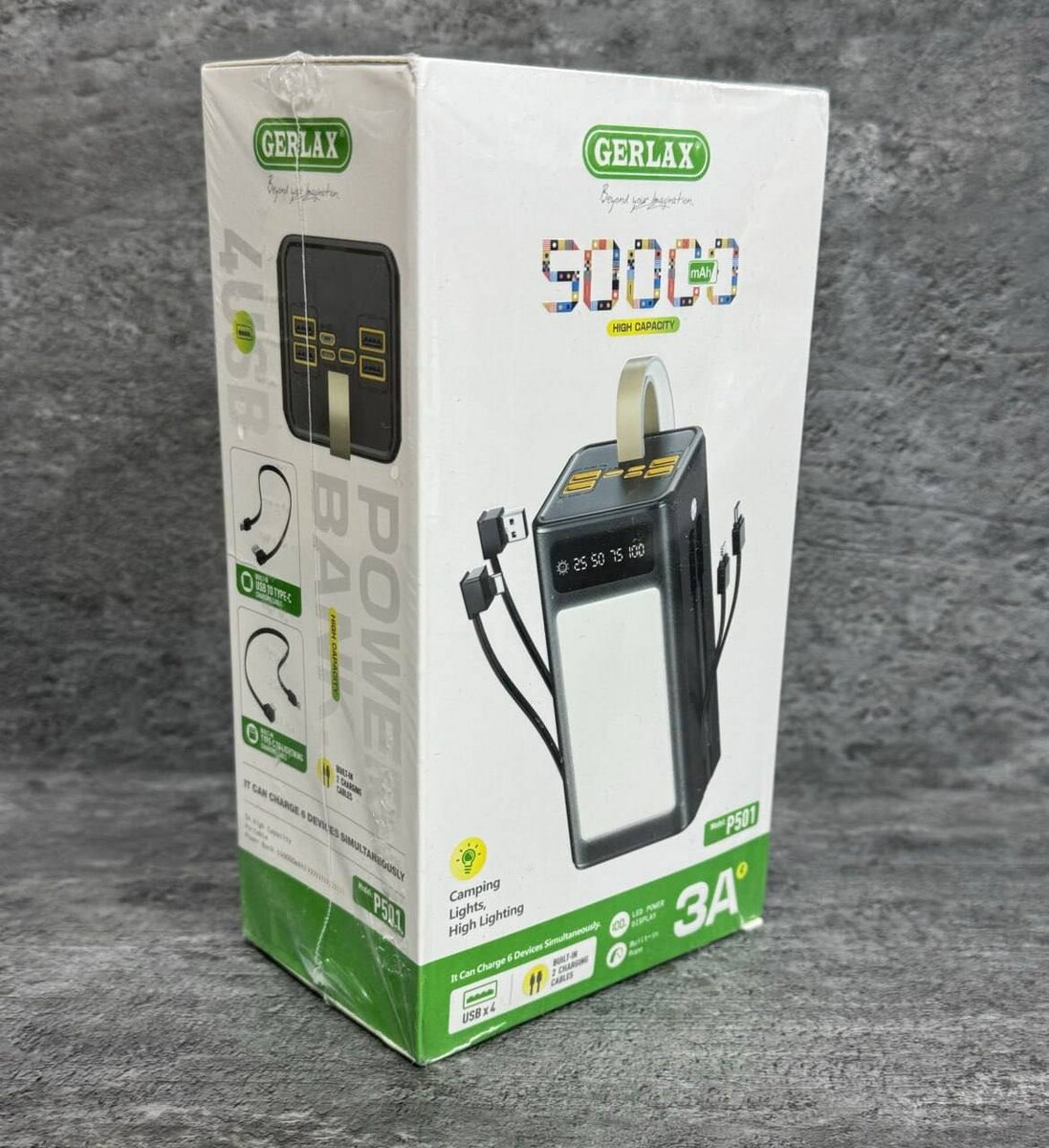 GERLAX ORIGINAL PRODUCTS ️ POWER BANK: «P501» 50000mAh LED DISPLAY LED панель, светильник Со встроенными шнурами