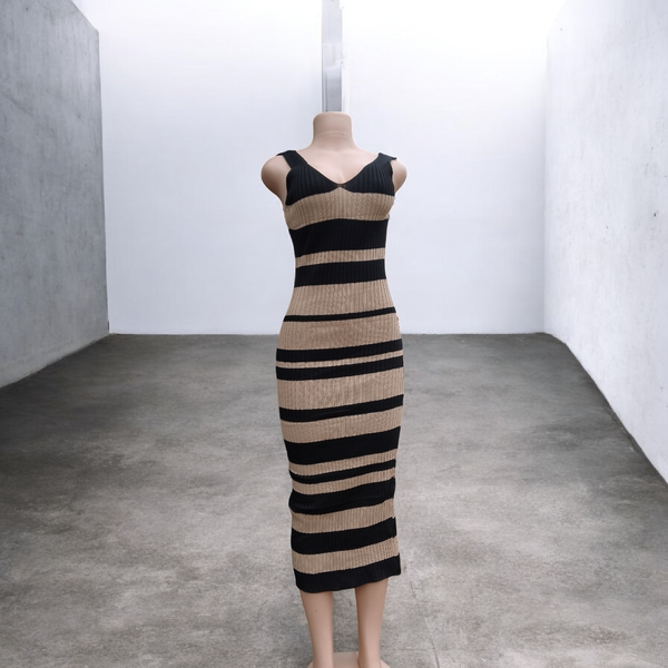 Robe en tricot rayée noir et beige