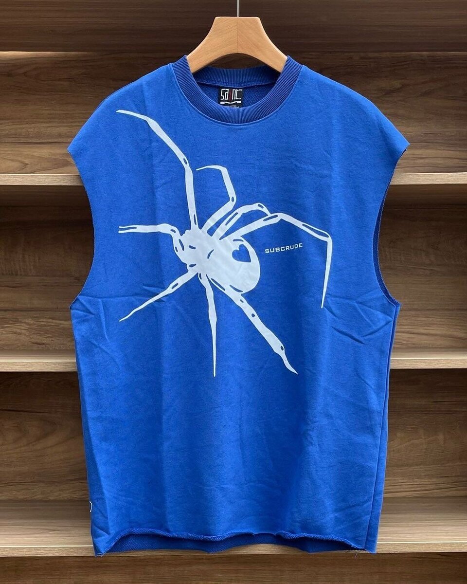 Ce gilet bleu vif avec un grand motif d'araignée blanche sur le devant est idéal pour les amateurs de designs originaux et décontractés. Parfait pour l'été, il est confortable et élégant pour une tenue décontractée.