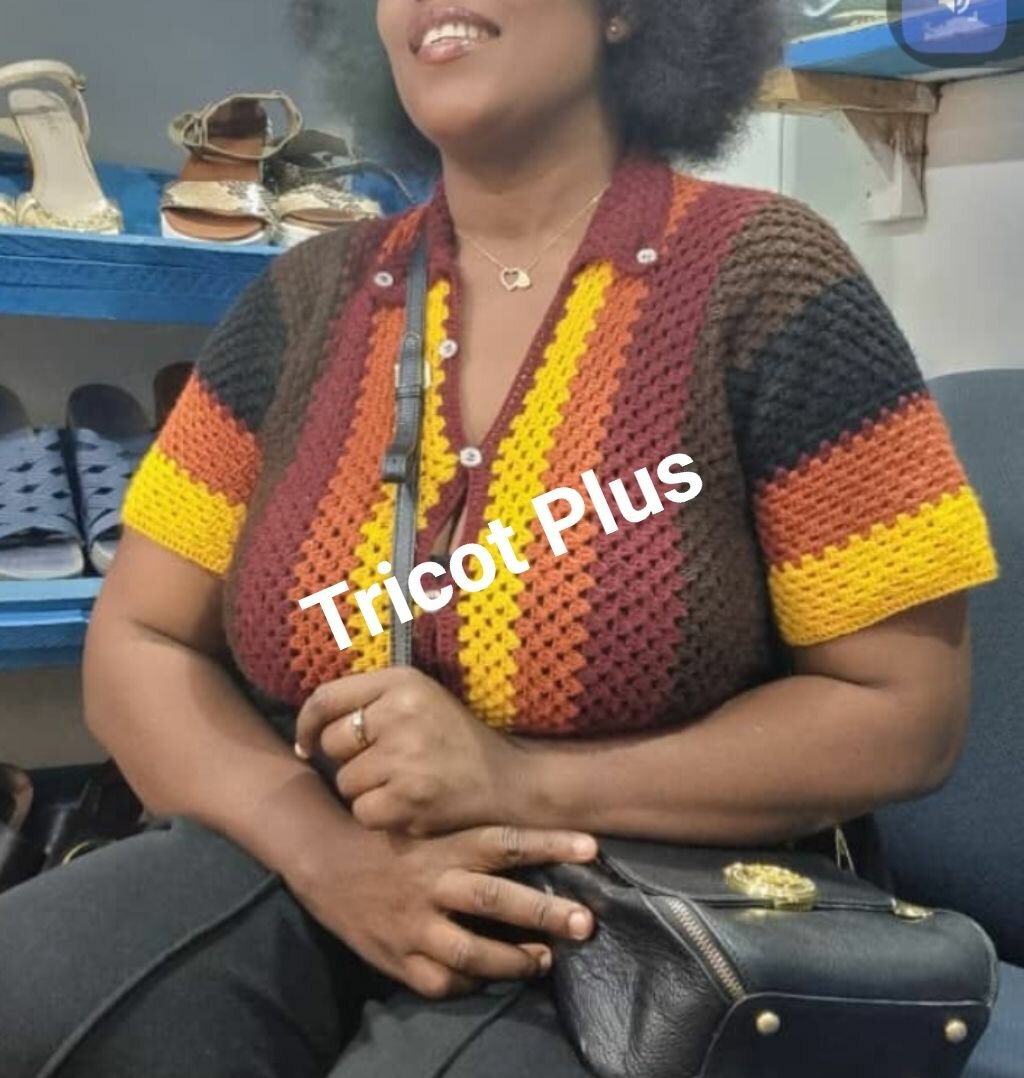 Chemise tricotée à la main, style rétro, parfait pour les journées détendues. Couleurs vives pour un look éclatant.