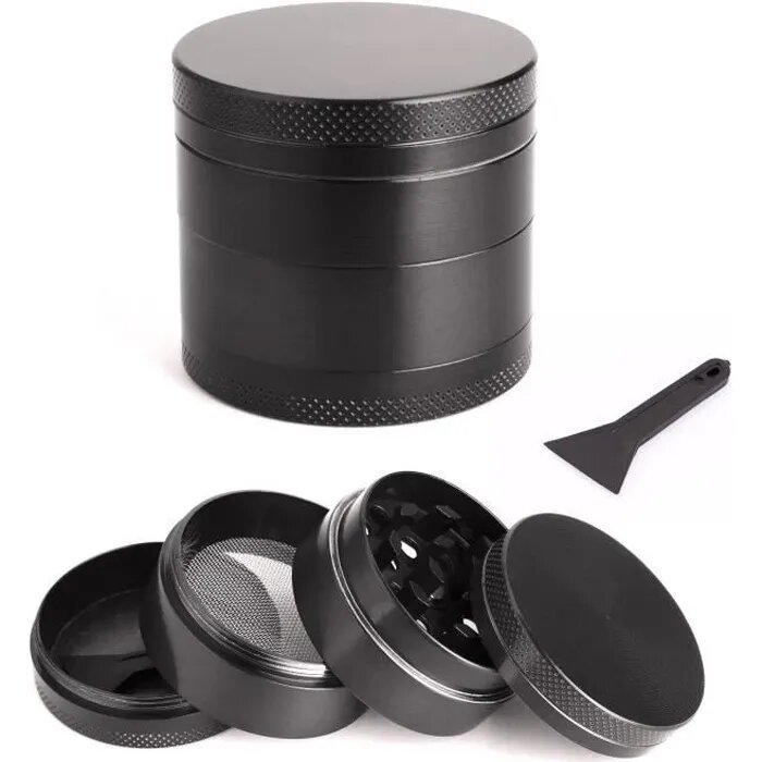 Efficient 4-piece herb grinder with durable aluminum construction. Includes scraper for easy collection and a smooth lid for effortless grinding. Ideal for herbs and spices.