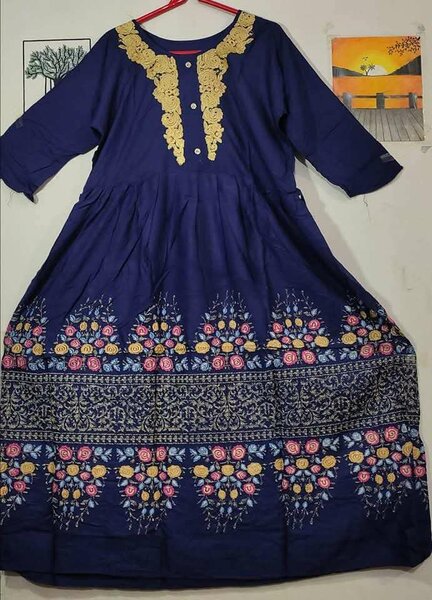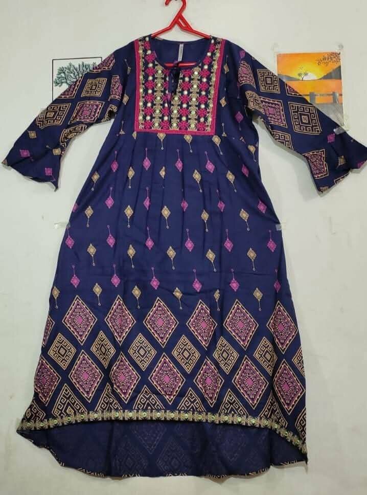 Woman's Stitched Mirror Work Printed Shirt and Trouser