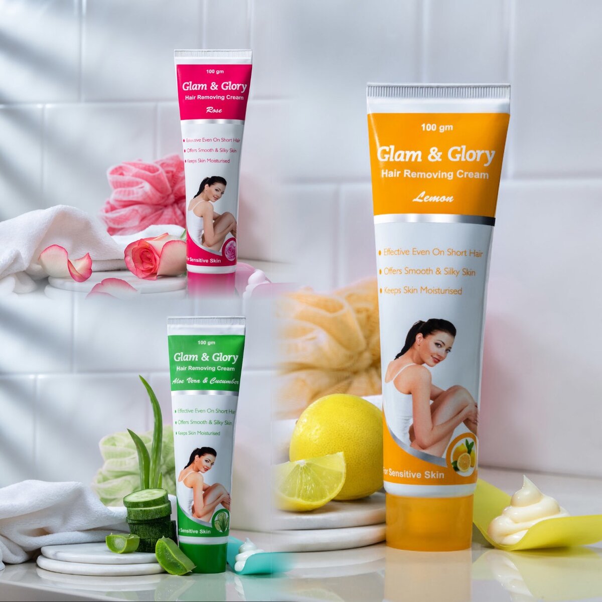 Embrace Smooth and Silky Skin with Glam & Glory Hair Removal cream. The product is formulated to prevents razor bumps, nicks, ingrown hair and irritation and available in three flavors namely Rose,Aloe Vera and Lemon .