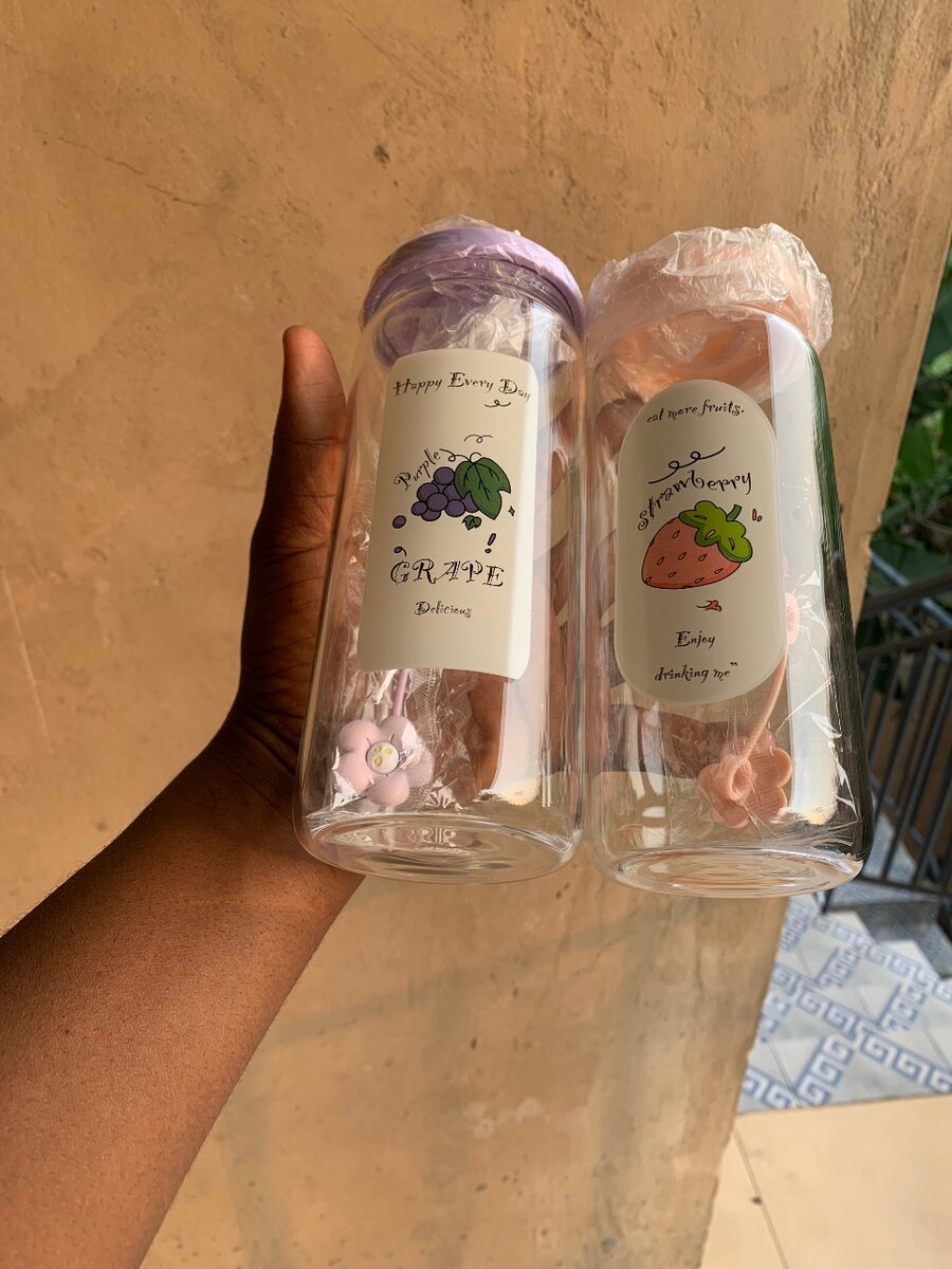 Glass bottle with straw