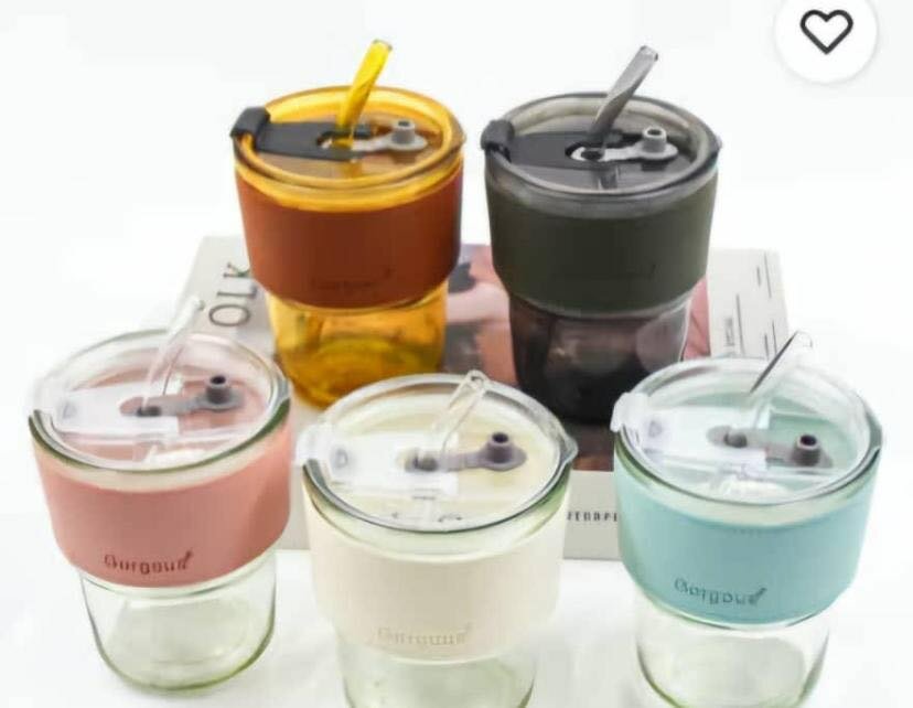 Glass Cup with Lid and straw