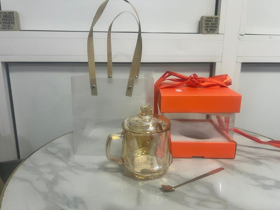 Glass cup with spoon thick and very heavy can be used for household or can be used as souvenirs for any event. wholesale deals available