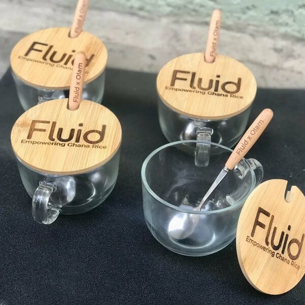 Glass mug with wooden lid and sooon