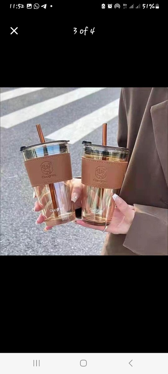 It comes in glass, with a glass straw and a ladder coat,in sizes
