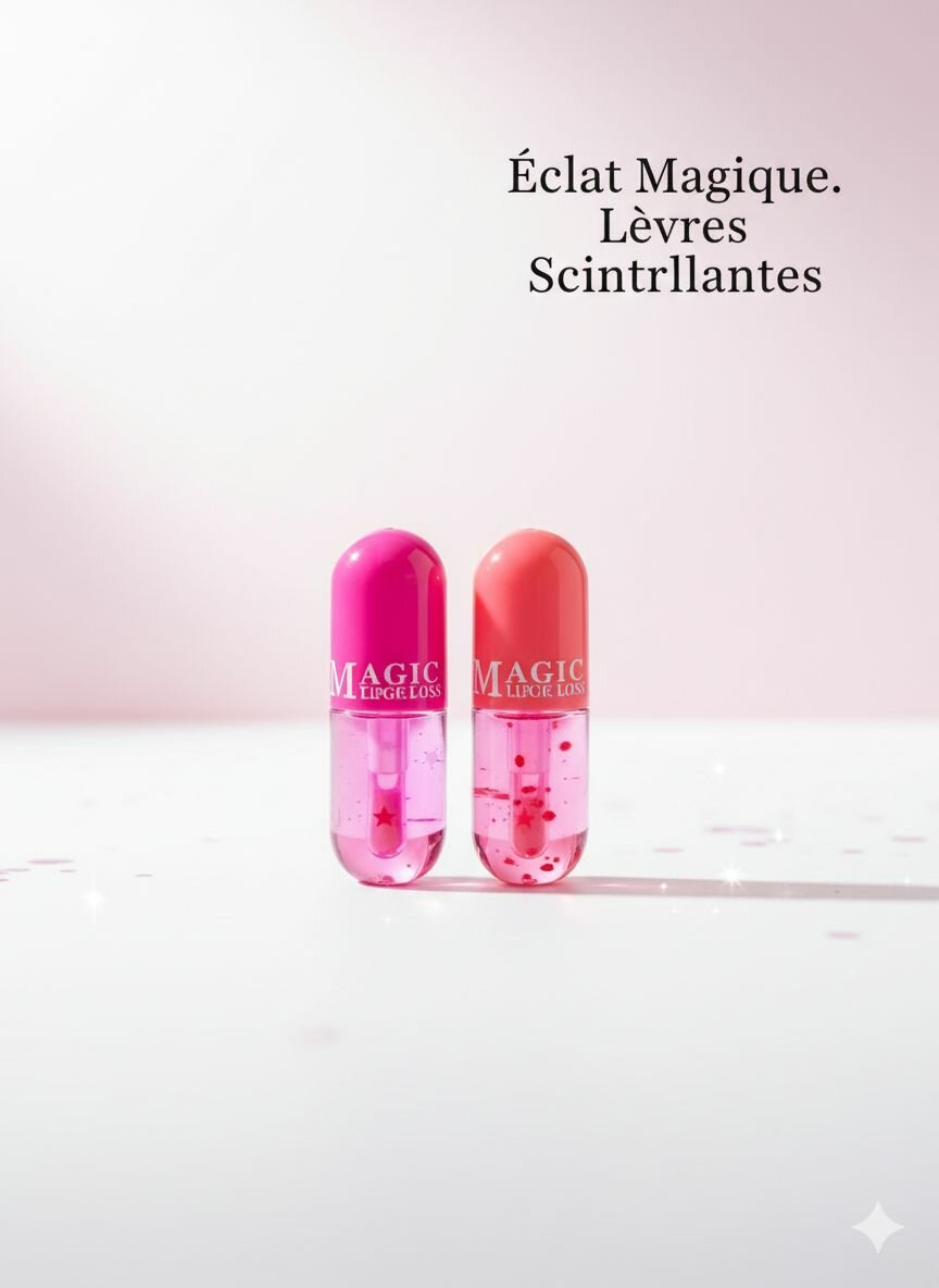 Découvrez le gloss double éclat pour des lèvres brillantes et hydratées. Formule enrichie en particules scintillantes pour un effet glamour unique. Parfait pour une touche de magie au quotidien.