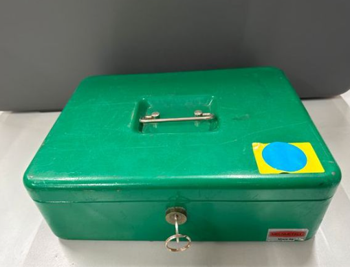 aisse à monnaie En acier laqué, sans soudures, poignée nickelée. Fermeture avec cylindre de sécurité et deux clés. Casier intérieur en matière plastique.