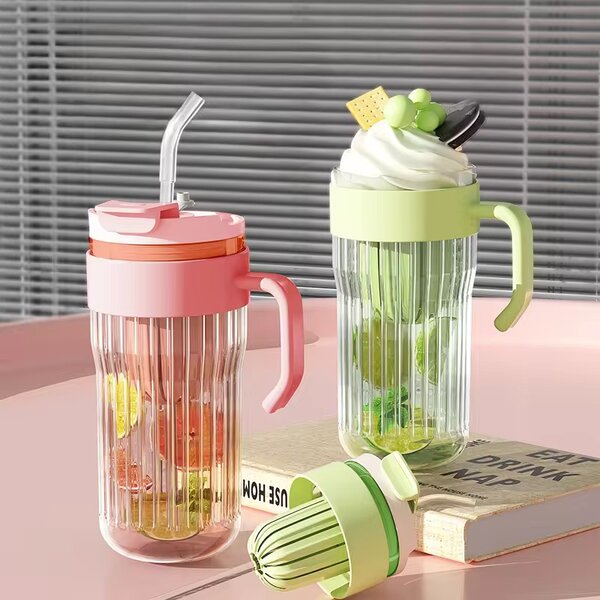Gobelet en plastique transparent avec paille colorée. Idéal pour les boissons fraîches, facile à transporter et nettoyer. Parfait pour la maison, bureau ou extérieur.