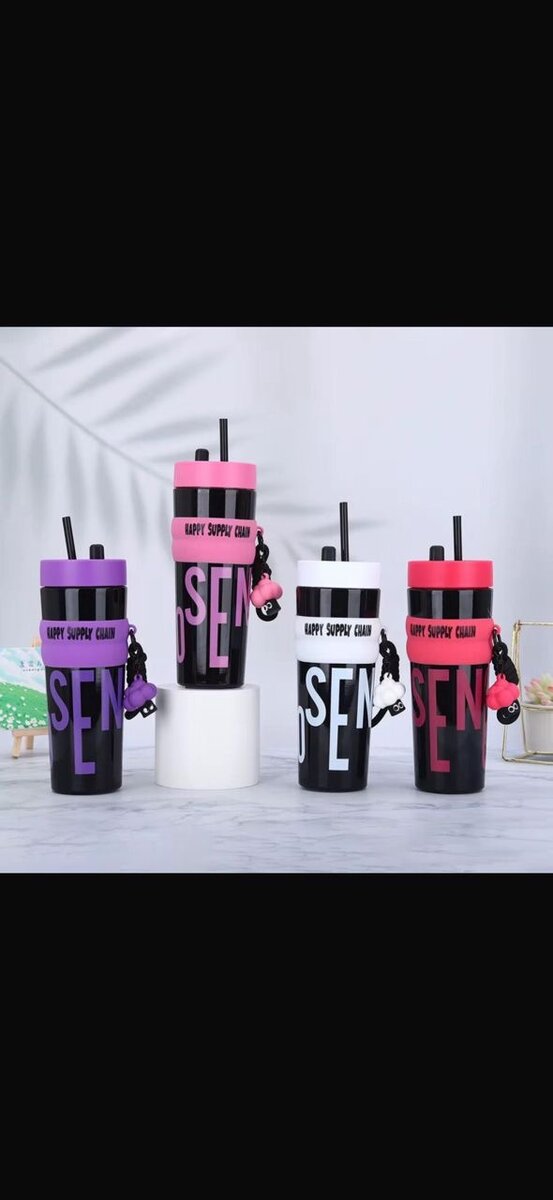 Gourde colorée avec paille, lot de 4
