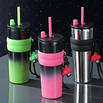 Gobelets élégants et réutilisables avec paille intégrée et couvercle sécurisé. Idéal pour boissons chaudes et froides en déplacement. Fabriqué en matériaux durables, parfait pour l'usage quotidien. Choix de couleurs tendance avec breloque décorative.