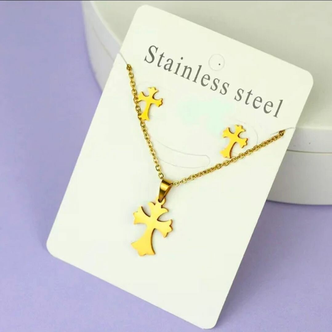 Gold Cross Necklace Set