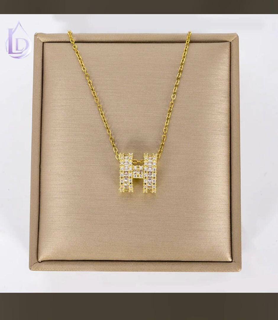 Elevate your style with this stunning gold necklace featuring a dazzling diamond-studded 'H' pendant. Perfect for personalizing your look or gifting to a loved one. The elegant design suits any occasion, making it a versatile addition to your jewelry collection.
