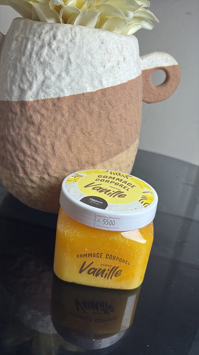 Découvrez le gommage corporel parfum vanille, idéal pour une peau douce et revitalisée. Enrichi d'ingrédients naturels, il exfolie en douceur et laisse un parfum sucré. Parfait pour une utilisation régulière pour tous types de peau.
