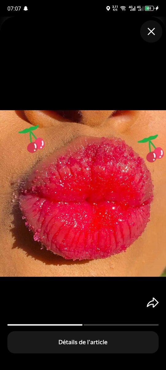 Découvrez notre exfoliant pour les lèvres à la cerise, idéal pour des lèvres douces et hydratées. Enrichi en arômes naturels, ce gommage enlève délicatement les peaux mortes tout en nourrissant vos lèvres. Parfait pour une utilisation quotidienne, il apporte un éclat brillant et une sensation sucrée irrésistible. Offrez à vos lèvres le soin qu'elles méritent!
