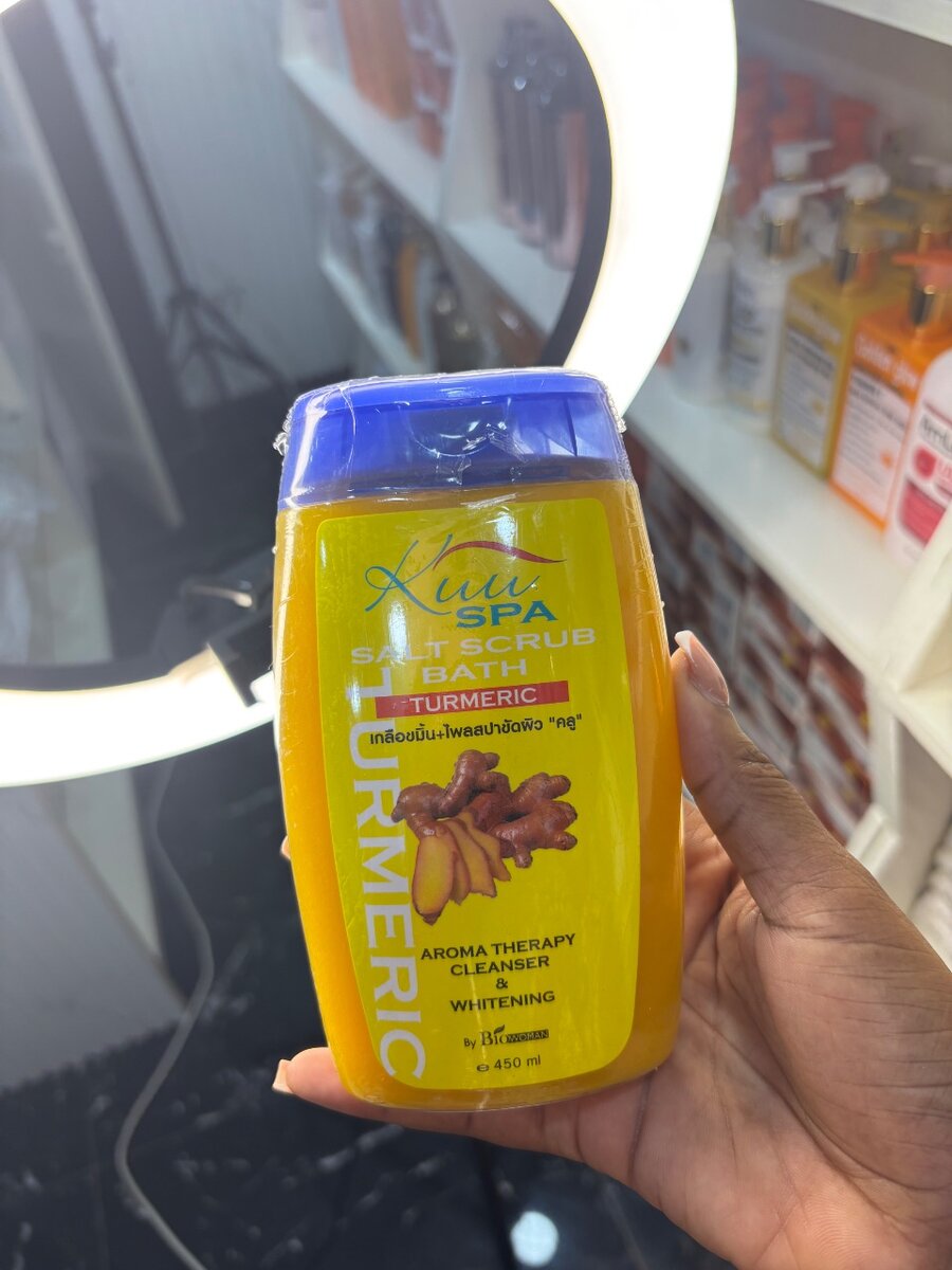 Gommage au sel enrichi au curcuma pour une peau éclatante. Nettoie et illumine avec un arôme revitalisant. Parfait pour un soin spa à domicile.