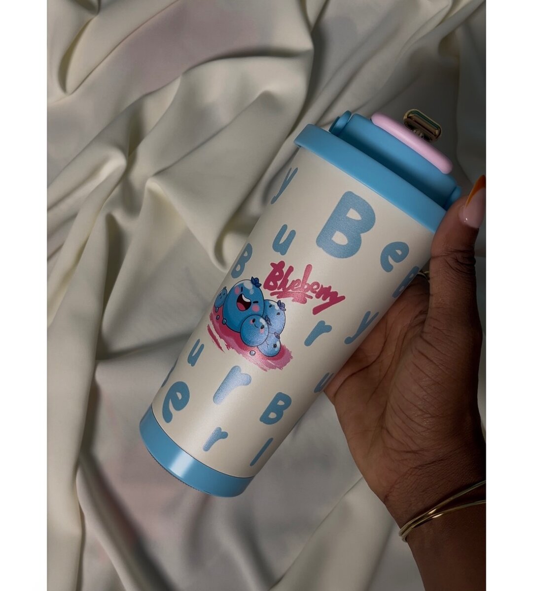 Tumbler kawaii avec accessoires beauté
