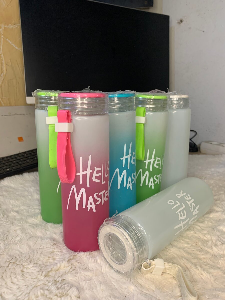 Profitez d'une hydratation stylée avec cette bouteille d'eau "Hello Master". Conçue en matériaux durables, elle est idéale pour le sport, le bureau ou les sorties. Son design moderne et coloré la rend irrésistible et pratique à emporter partout grâce à sa sangle.