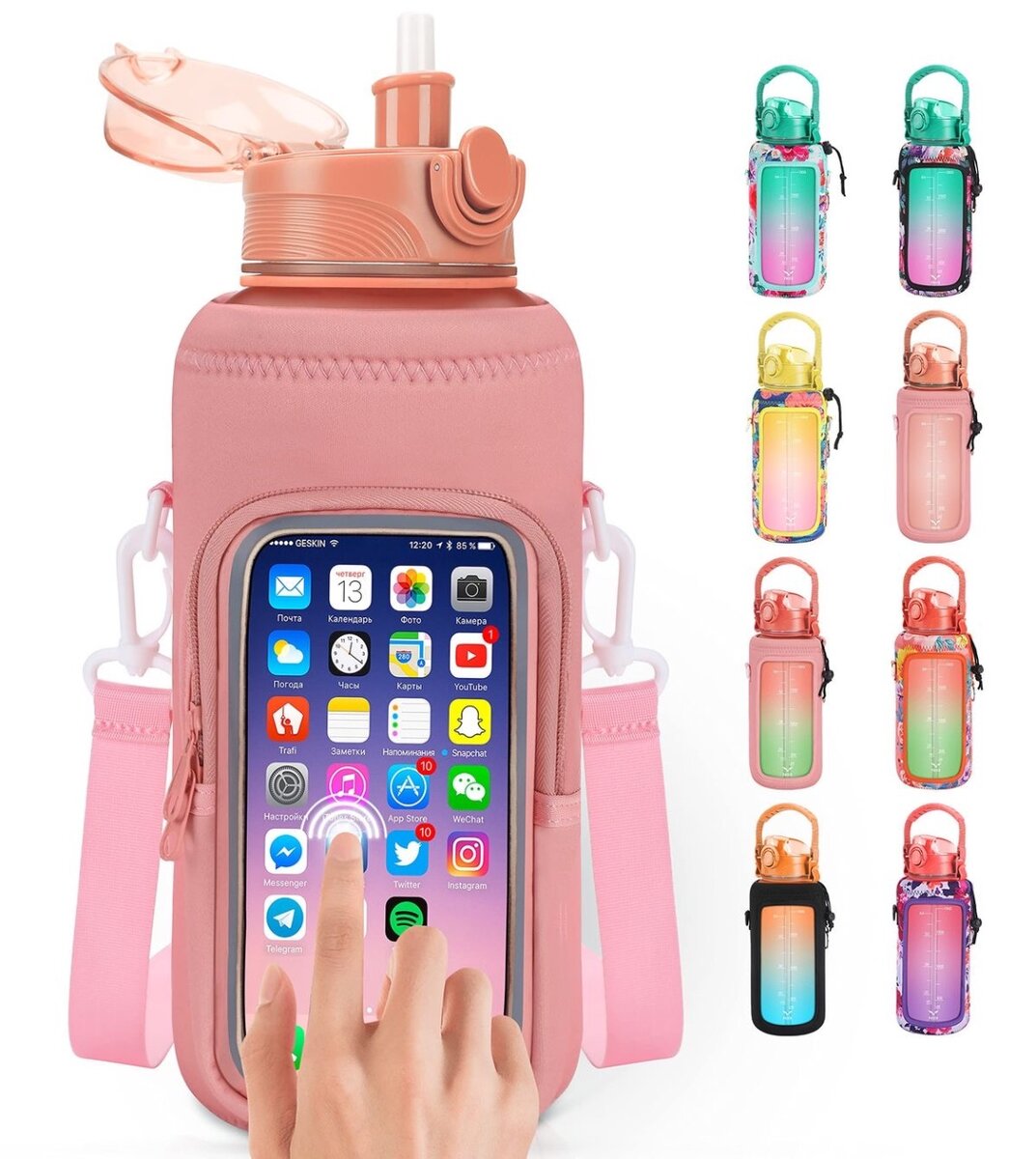 Restez hydraté avec style grâce à notre gourde intelligente. Dotée d'une housse pratique pour téléphone et clés, elle est idéale pour les amateurs de fitness et les aventuriers. Avec des marqueurs d'heure, elle vous aide à suivre votre hydratation quotidienne. Parfait pour le sport, les randonnées, ou au bureau. Disponible en plusieurs couleurs vibrantes.