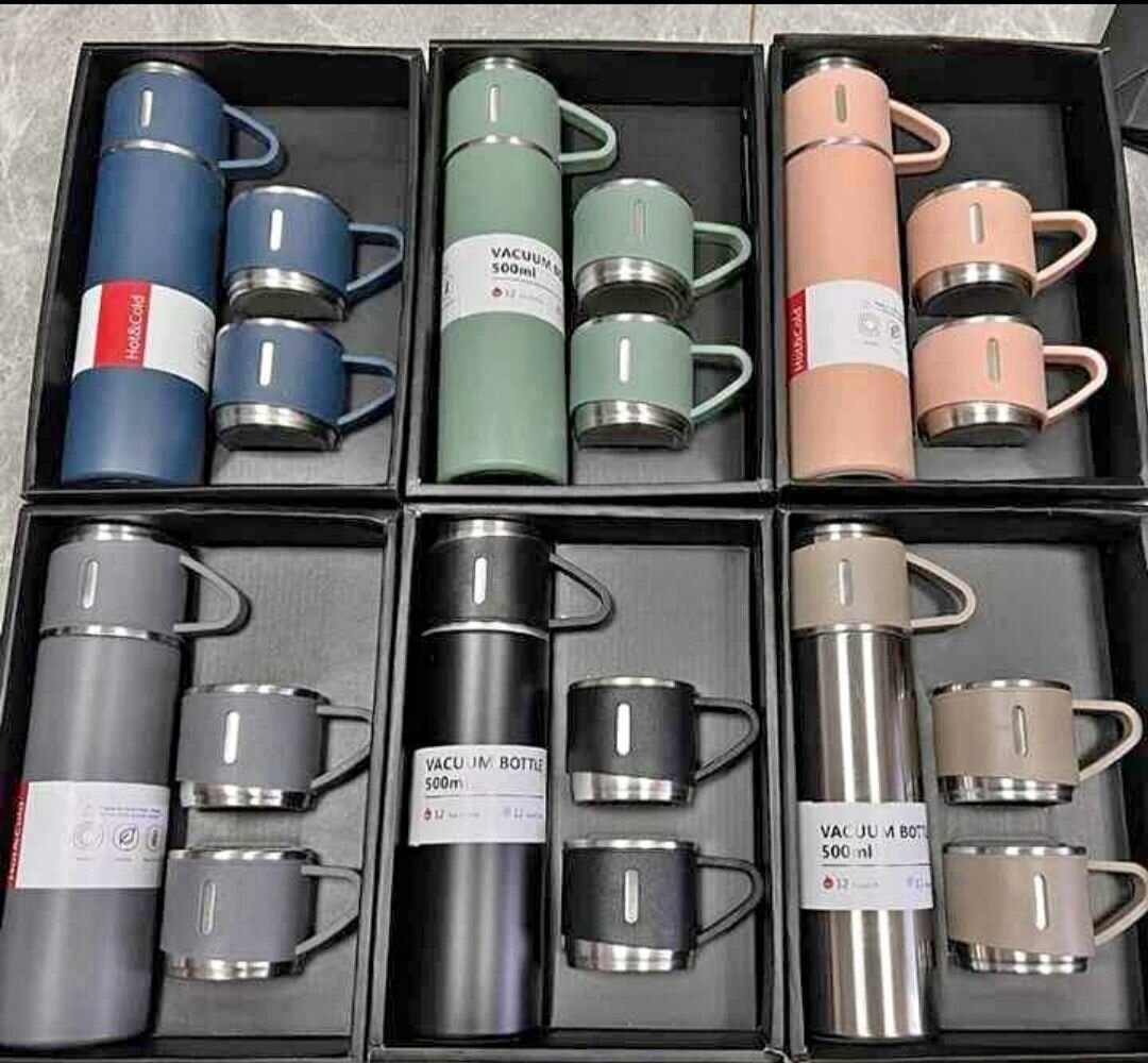 Gourde thermique avec 3 gobelets, conserve la température pendant plus de 12h de temps